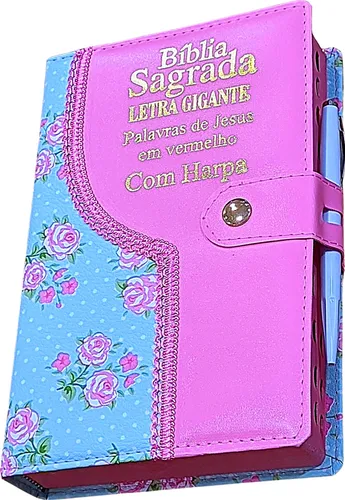 Bíblia Sagrada Feminina Letra Grande Botão Rosa Com Harpa Rei Das Bíblias